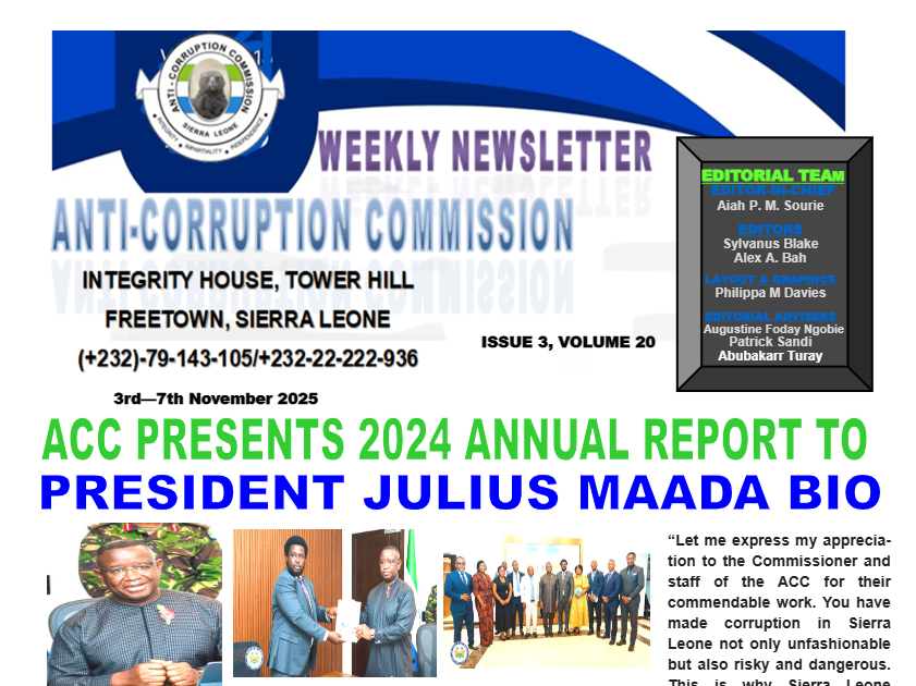 Contact us on: +23278832131 or info@anticorruption.gov.sl