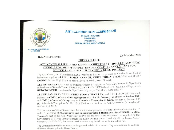 SIERRA LEONE MAKES STEADY PROGRESS IN GLOBAL CORRUPTION RANKING