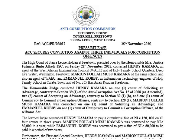 ANTI-CORRUPTION COMMISSION OF SIERRA LEONE